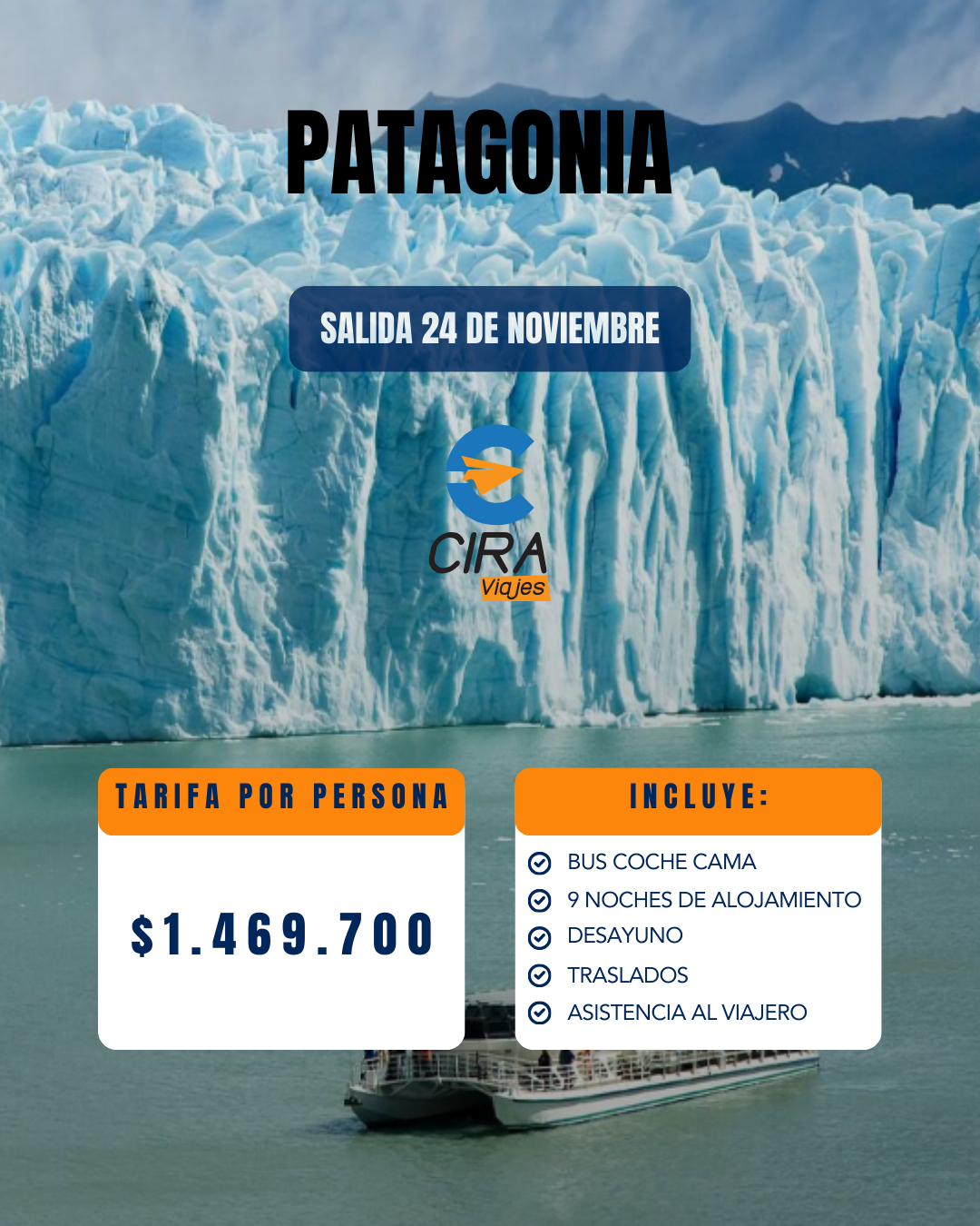 SAFARI NÁUTICO: Excursión en Catamarán de una hora de duración donde nos acercaremos a metros de la pared sur del Glaciar Perito Moreno para así apreciar su imponente magnitud con mayor detalle.